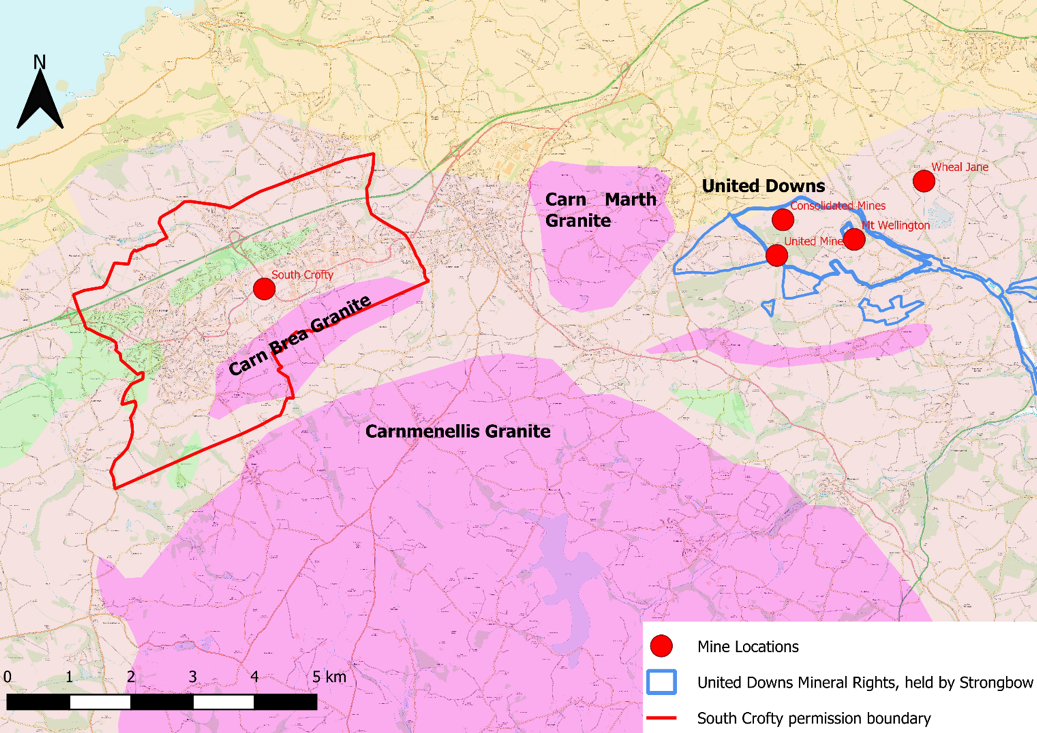 Strongbow completed the acquisition of the South Crofty tin project plus additional mineral rights located in Cornwall, UK, in July 2016 (see Company news release dated July 12, 2016). The additional mineral rights cover an area of approximately 15,000 hectares and are scattered throughout Cornwall. Some of these mineral rights cover old mines that were historically worked for copper, tin, zinc, and tungsten.