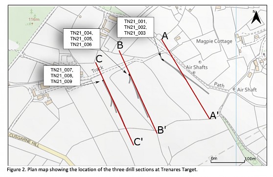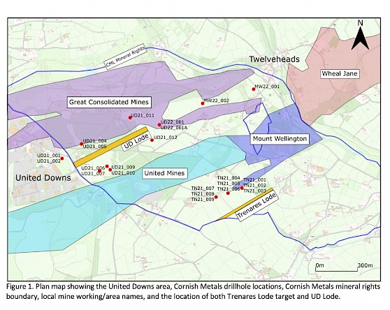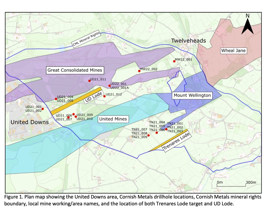 Cornish Metals Inc. (TSX-V/AIM: CUSN) (“Cornish Metals” or the “Company”), a dual-listed company focused on advancing the South Crofty high-grade, underground tin project through to delivery of a feasibility study, as well as exploring its additional mineral rights, all located in Cornwall, SW England, is pleased to report the assay results from nine diamond drill holes drilled to test the Trenares Lode target within the United Downs project.