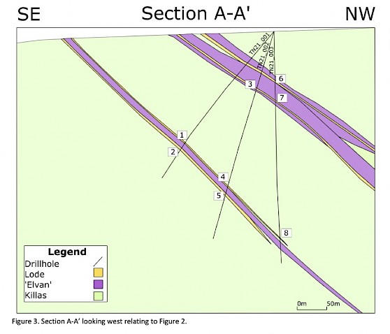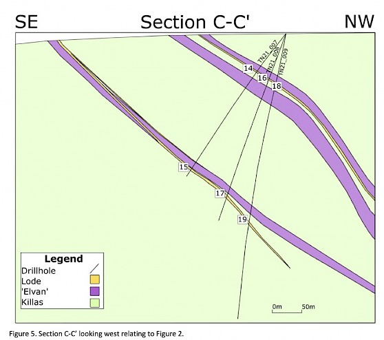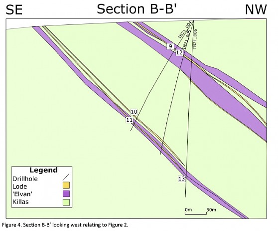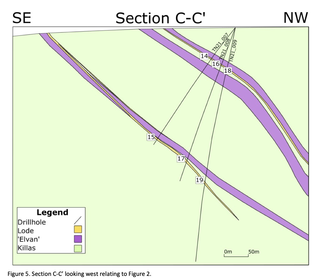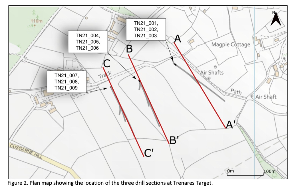 Richard Williams, CEO of the Company, stated “The Trenares Target drill programme has been successful in demonstrating the presence of multiple zones of mineralisation in an area of the United Downs project that is underexplored, has never been mined and represents a compelling exploration target. The presence of high-grade tin and zinc warrants further follow-up exploration. Once we are in receipt of all remaining drill programme assays, we can evaluate the priority targets for follow up work.”
