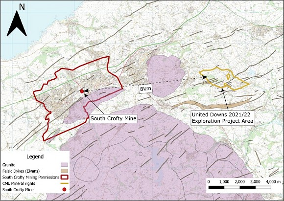 Figure 1 – Map showing the location of the United Downs Project in relation to South Crofty Mine
