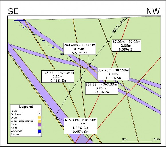- The high-grade tin intersects in MW22_002, GWDD_002 (see News Release dated November 17, 2020), UD21_011A (see News Release dated December 6, 2021), UD22_001, UD22_001A, and MW22_002 support management’s belief that tin grades increase with depth, similar to the mineralisation transition seen at South Crofty.