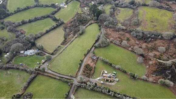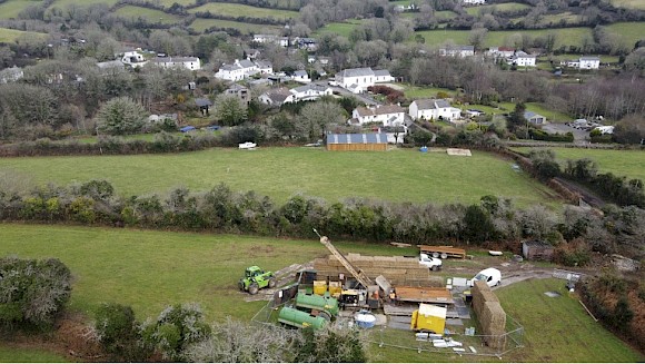 Photograph showing the drilling of MW22_001 with the village of Twelveheads in the background